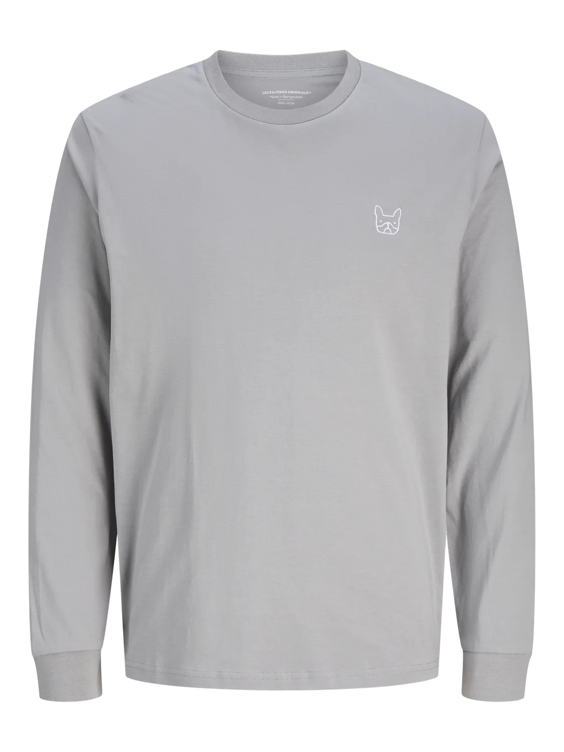 Camiseta m/l con pequeño logo bulldog bordado Jack & Jones Grey