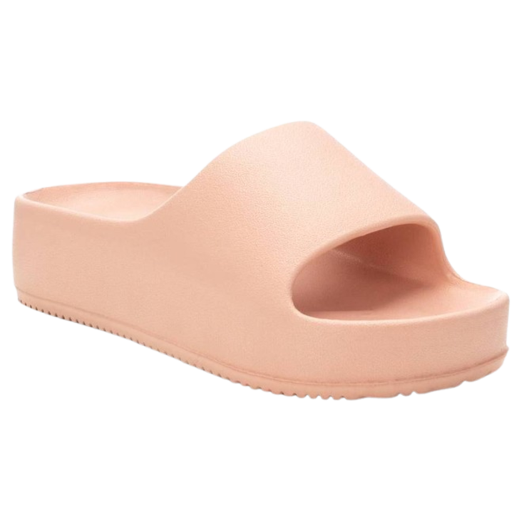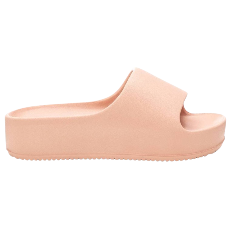 Chancla de pala con mini plataforma. De color rosa palo. Con suela antideslizante. Fabricada con materiales de buena calidad y alta durabilidad. Fabricada con procedimientos ecofriendly. Máxima cómodidad y comfort para tus pies. Además es ultraligera. Diseño de inspiración ochentera. Una chancla imperecedera totalmente renovada y actualizada. Además es un auténtico must have de todas las influencers y celebrities. Y es perfecta a para todas aquellas que son amantes de la simplicidad y la sobriedad. Acertarás con la compra! Estilo sportswear.