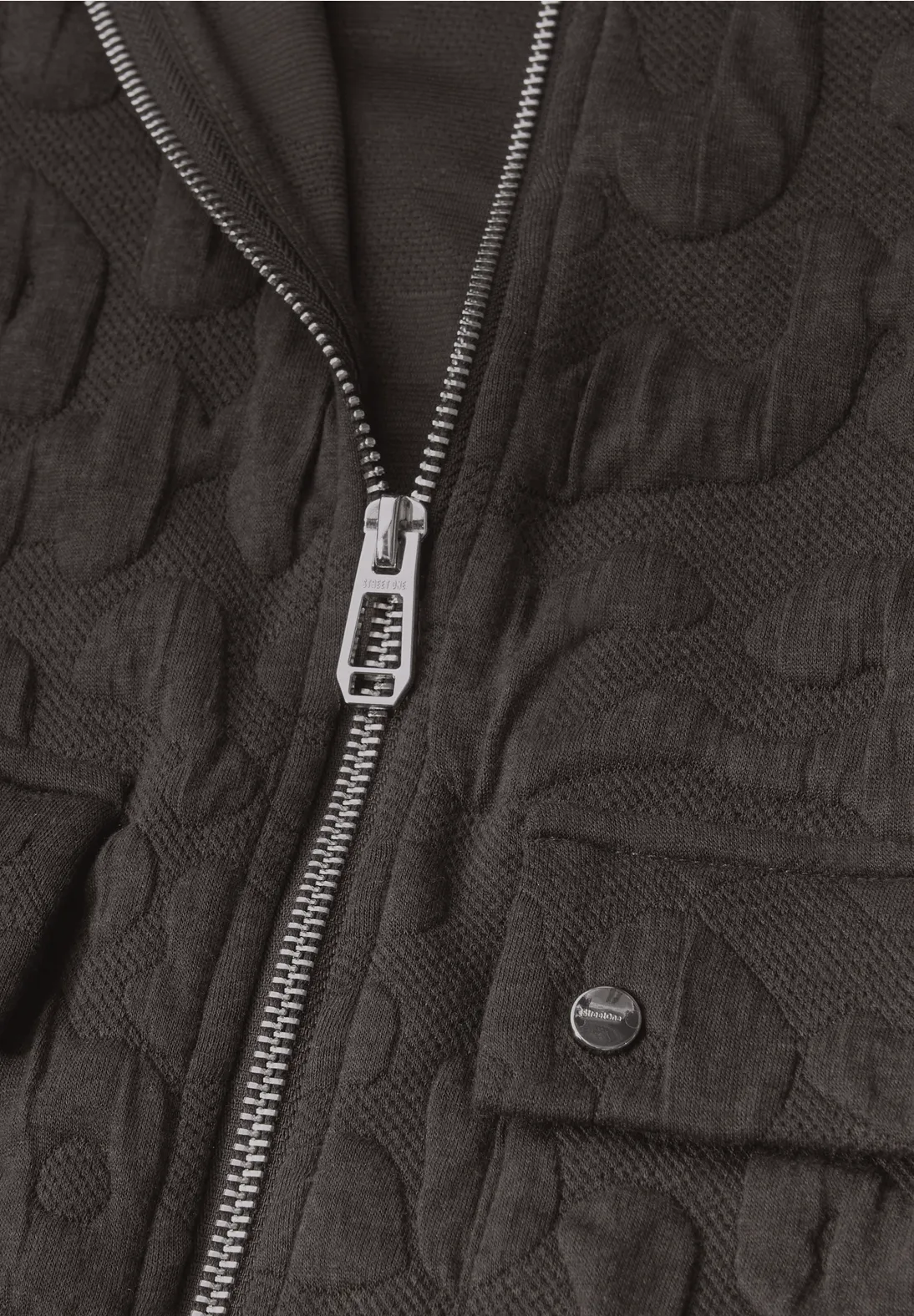 Chaqueta de punto con cremallera. De color marrón chocolate. Con dos bolsillos con tapetas. Con cremalleta contrastada en gris plata. Con ajustadores en la parte inferior. Tejido de tacto suave y agradable. Tejido de buena calidad y fácil lavado. Fabricado con procedimientos ecofriendly y respetuosos con el medio ambiente. Una prenda perfecta para tus working days en la oficina, combínala con una blusa entallada y un pantalón sastre y lucirás espectacular. Además es una pieza imperecedera que es un gran candidato para cualquier fondo de armario. Y con una magnífica relación calidad - precio. Acertarás con la compra! Estilo casualwear.