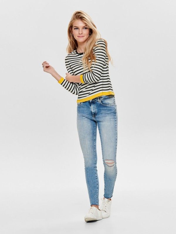 Jersey con cuello redondo y rayas Only Cloud Dancer