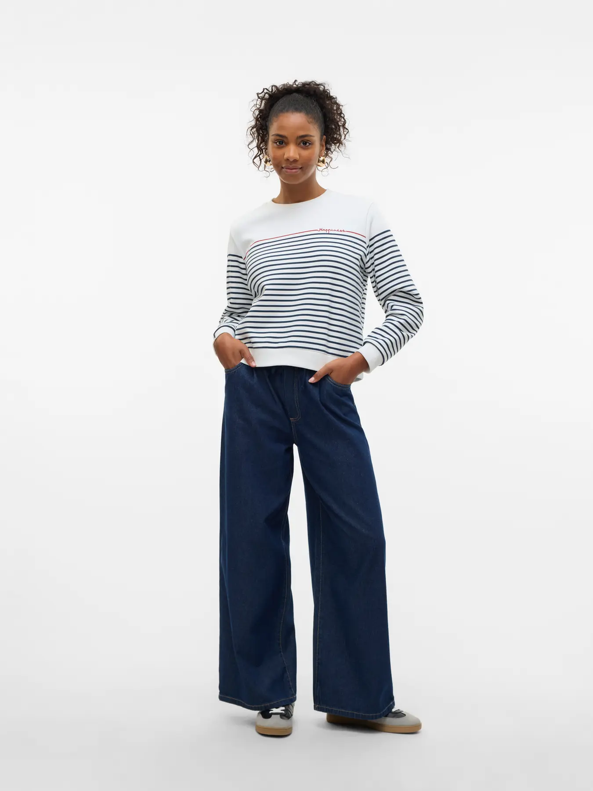 Sudadera de cuello redondo rayas happiness Vero Moda Cloud Dancer